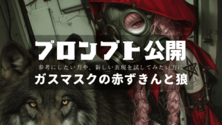 ガスマスクの赤ずきんと狼 AIイラスト&プロンプト このページでは、X(旧Twitter)で公開したAIイラストと、その生成に使用したプロンプトをご紹介します。 「ガスマスクの赤ずきんと狼」をテーマに、ピンク髪の少女と大きな狼を描きました。...